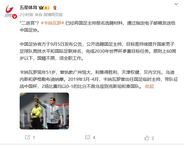 9月9日上午,上海电视台的5个星际运动会宣布,Cannavaro已通过指定的电子邮件地址向国家足球队首席教练的中国足球协会发送了注册材料和任命。这张照片显示了中国足球协会5 -Star Sports Weibo的屏幕截图。 9月5日发表的官方宣布旨在在国家足球队的总理开放和招募教练,不断提高国家男性足球队和FIFA分类的竞争水平,并完成2030年世界杯的参与目标。通常,60岁以下的儿童不受限制,必须全职工作。 Kannavaro今年51岁,是广州和天津的教练。他还训练Riad Victory,Benevento,Udinese和Dynamo Zagreb等团队。从直到2019年4月,Canavaro担任国家足球队的临时教练WHICH使他的球队参加了中国杯,在两场比赛中输给了乌兹别克斯坦和泰国。 Cannavaro曾经在广州和天津教练Kannavaro教练和“进入宫殿”?此前,6月27日,中国足球协会证实,伊万科维奇不再是国家足球队的负责人,然后正式宣布,美国国家青年队U20的前负责人柔伊维奇将担任国家足球队的国家足球教练。 Jiuerjevic是一次临时射击。在东亚杯之后,中国国家队将继续推出新的世界教练。 6月28日,Live Broadcast获悉,Cannavaro对训练中国团队感兴趣,有传言称,其建议材料已发送给奇诺足球协会。今年4月9日,这位巨大的克罗地亚迪纳摩·萨格勒布(Croatian Dynamo Zagreb)宣布了经理Cannavaro的解雇。值得一提的是,Cannavaro于12月29日开始训练Dynamo ZagrebAST年份,仅三个月后离开了团队。 2024年12月29日,Canavaro成为Dynamo Zagreb的新教练。在他的领导力中,Canavaro在正式比赛中获得了14场比赛的各种球队,取得了7场胜利,两次平局和5场损失。球队打进22个进球,并赢得了21个进球。其中,迪纳摩·萨格勒布(Dynamo Zagreb)在冠军联赛第八轮比赛中以2-1击败了AC米兰。毫无疑问,Canavaro球员时代的伟大。他带领意大利球队获得了2006年世界杯冠军,担任队长 +中央防守球员,赢得了Golden of Golden奖和年度世界足球运动员。但是,Cannavaro教练只能被解释为缺乏质量。到目前为止,他作为首席教练的重要荣誉在中国基本上是赢得的。他领导了广州埃弗朗德,并赢得了中国超级联赛和足总杯的冠军。 Canavaro曾经领导一支意大利队,并赢得了2006年世界杯冠军的冠军 + CENTRAL后卫。他已经有一位汽车博客作者来争夺国家足球队的训练。 9月5日,中国足球协会宣布了一份广告,向国家男性足球队的首席教练揭示。据《中国新闻周刊》报道,一些足球媒体博客作者已要求足球协会招募国家足球队的首席教练。 《中国新闻周刊》说,中国足球协会向公众开放,这使其态度非常低。在新闻发布会时,《中国新闻周刊》了解到,实际上通过发布的官方信息实际上应用了一些自动的博客football。但是,除了年龄限制外,如果您阅读了足球协会仔细发布的招聘公告,也有许多条件在门槛上。更高的要求。稍简单的要求是强大的沟通能力,健康,良好的行为,良好的社会l形象,刺激违规,非法和犯罪史。其余条款具有更高的阈值。申请人必须在有效期内首先保留专业教练证书和培训许可证。其次,在国家队正式比赛的最后阶段,FIFA和IFCDEBE的赞助商是在欧洲和亚洲高级联赛的首席教练中拥有经验。这是公众的公众招聘,但仍然非常困难,对于真正的粉丝来说,“您做的任何事情”非常困难。编辑| Ma Yuan来源| 5星体育Hupu足球直播体育每周柔术新闻
